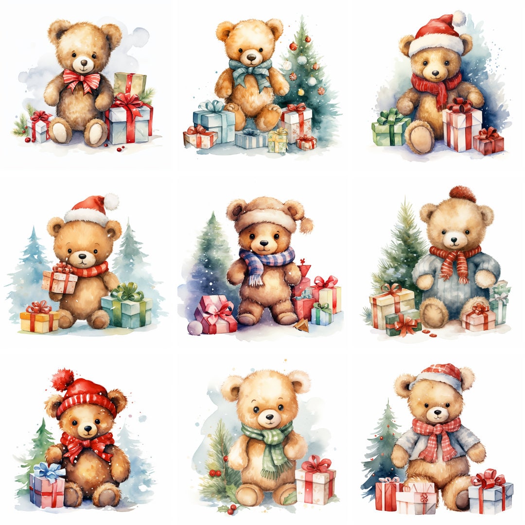 Christmas Teddy Bear Clipart Graphic By WaterColorArch · Creative Fabrica